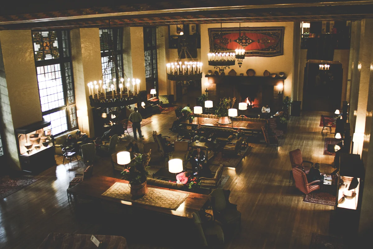After Yosemite Falls, we opted to not set off on a significant hike. It was already late in the afternoon and when TJ learned that I had never seen the Ahwahnee Hotel (the rustic, grand hotel near the valley center) he thought of just the plan—explore the historic hotel grounds and warm up near a fireplace with a spirit in hand.