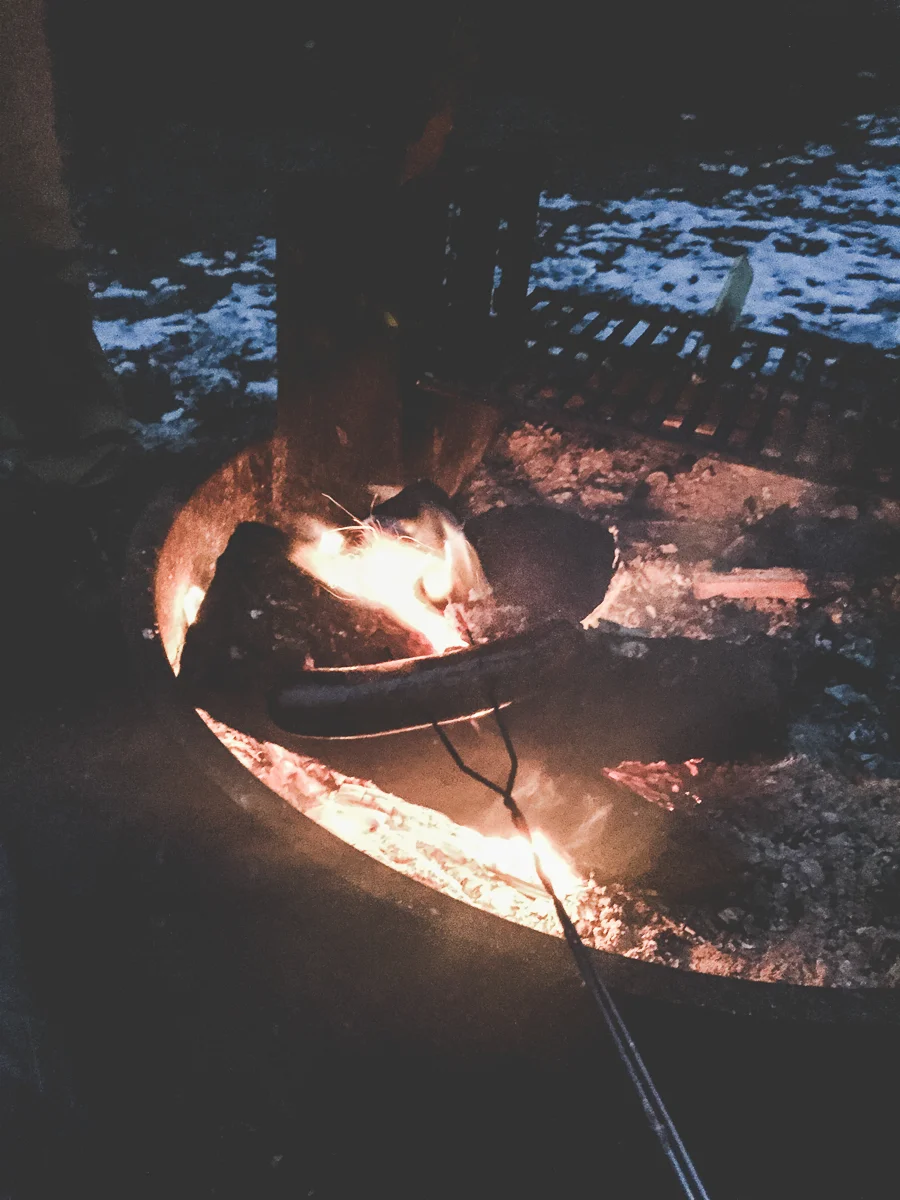 The trick was toilet paper! With the fire finally roaring, it was time for hot dogs and some beers. We laid the umbrella out over the table to house the condiments and some cold Doritos. It felt far too wet and sad to seem like a feast but deep down, it is what I had hoped this trip would entail.