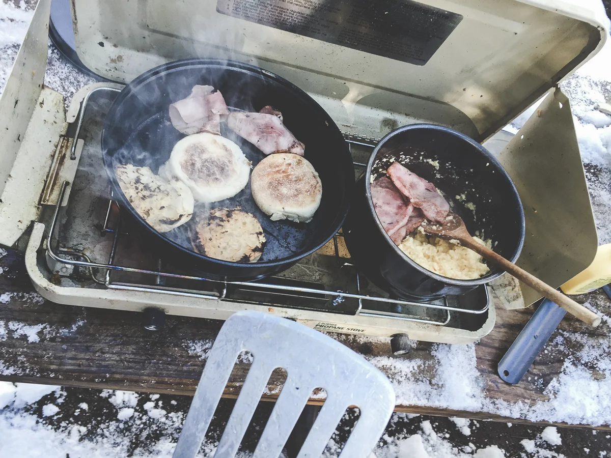 Satisfied with our early-morning photo tour, we returned to the campsite for breakfast. We wanted to make the most of the day and knew that a hike wouldn’t be possible without some fuel.