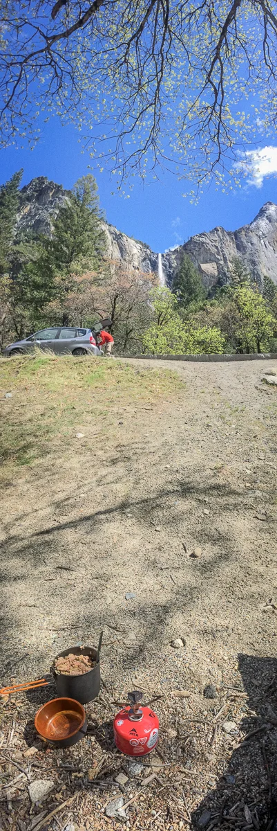 We found a spot between the famous rock face, El Capitan, and Bridalveil Fall and set up shop for some lunch. Rice and tuna would make for the perfect, light meal.