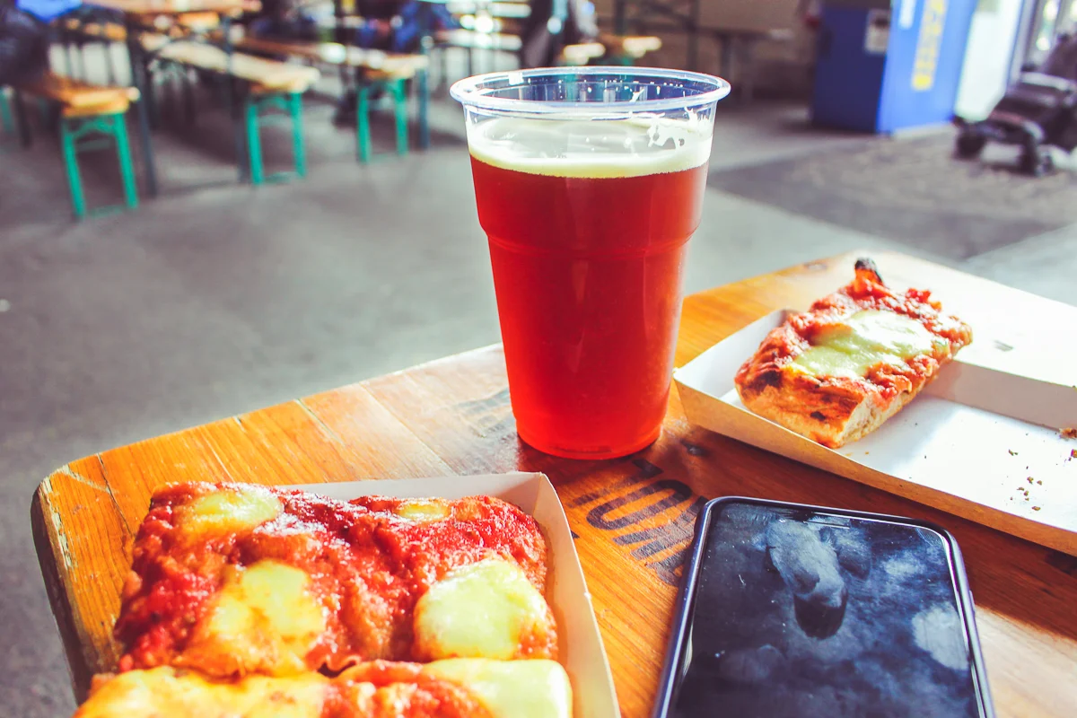 We grabbed a brick pizza and a beer and stocked our stomachs with our first meal since the airplane.
