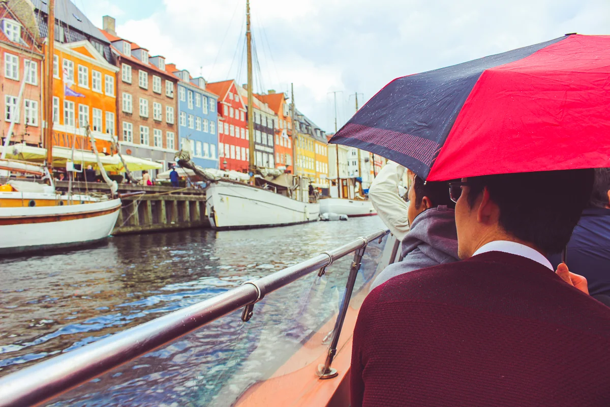 With the rain, most passengers retreated to the covered-midsection of the vessel but we didn’t find it too bothersome. We opened up an umbrella to share and prepared to hunker down but the sky soon cleared. With better skies, the other passengers returned to the back, including a quartet of Brits who looked like they belonged on the English-version of The Jersey Shore. Rain or shine, the boat’s live tour guide continued her narration in Danish, English, and German—a proficient trilingualism that is pretty common in Europe but seemed like black magic to an American such as myself.