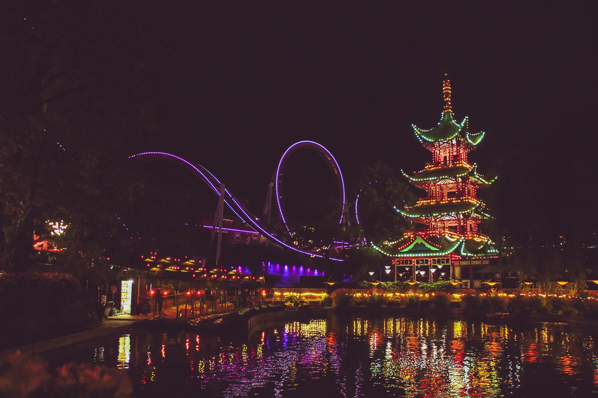 Tivoli Gardens opened in 1843, allegedly chartered by King Christian VII to keep his population amused (and thus distracted by monarchical politics). This would make Tivoli the second-oldest amusement park in the world after Bakken, a fairground-styled park 7 miles to the north, which opened a hundred years earlier. In addition to its age, Tivoli is arguably one of the earliest examples of theming and rides, with various buildings modeled after “the Orient” and mechanical rides that adorned its grounds from the earliest days. In addition to the rides, Tivoli has been, and continues to be, home to restaurants, bandstands, theaters, ornate gardens, and a night-time fireworks show.