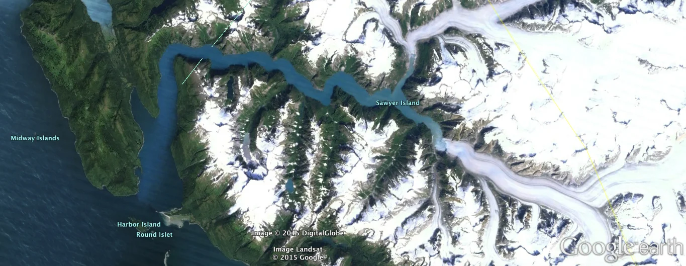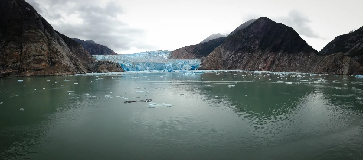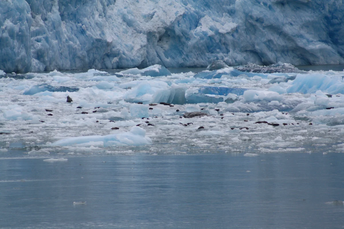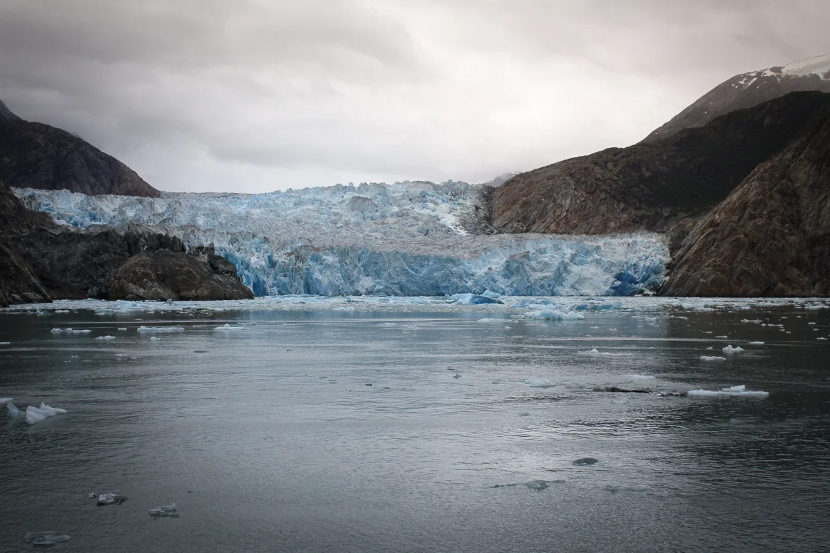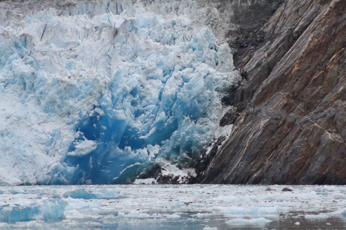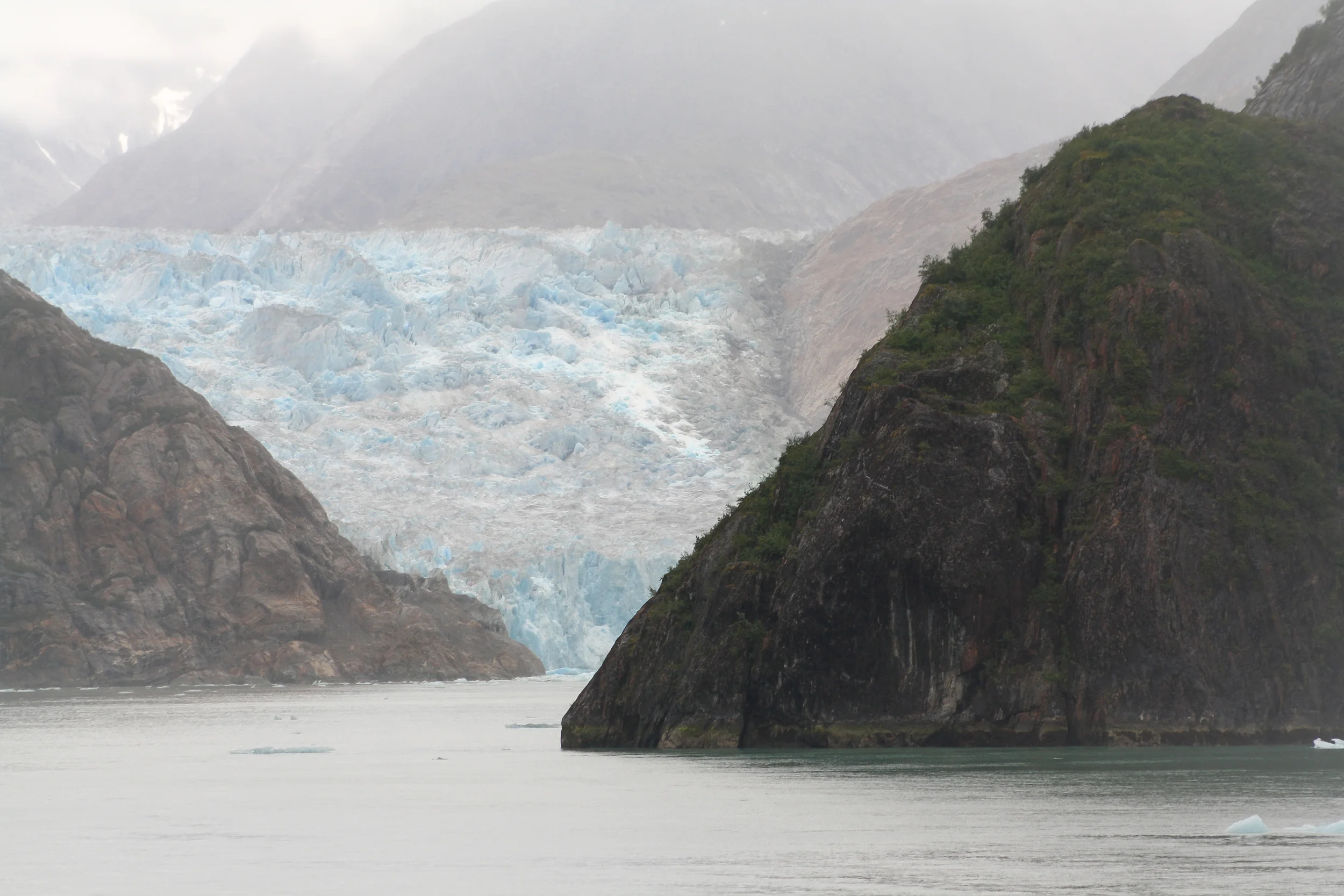 Soon, our patience paid off and we were facing the Sawyer Glacier head-on. We were excited to be in the presence of the glacier and marveled at its impressive presence and size. Despite this, you can not help but notice the light-colored rock on each side of the ice field, an outline of where the glacier was simply a decade ago.