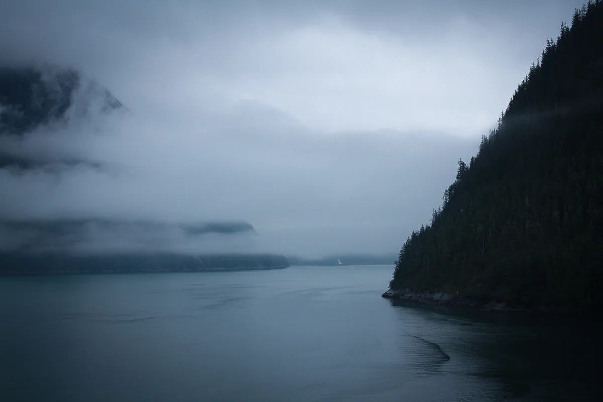 We sensed we were getting closer as the cliffs became more shallow. There were several small valleys jutting off from the canal; I assume that their lack of heavy forestation is evidence that a glacier used to fill each of these small inlets.