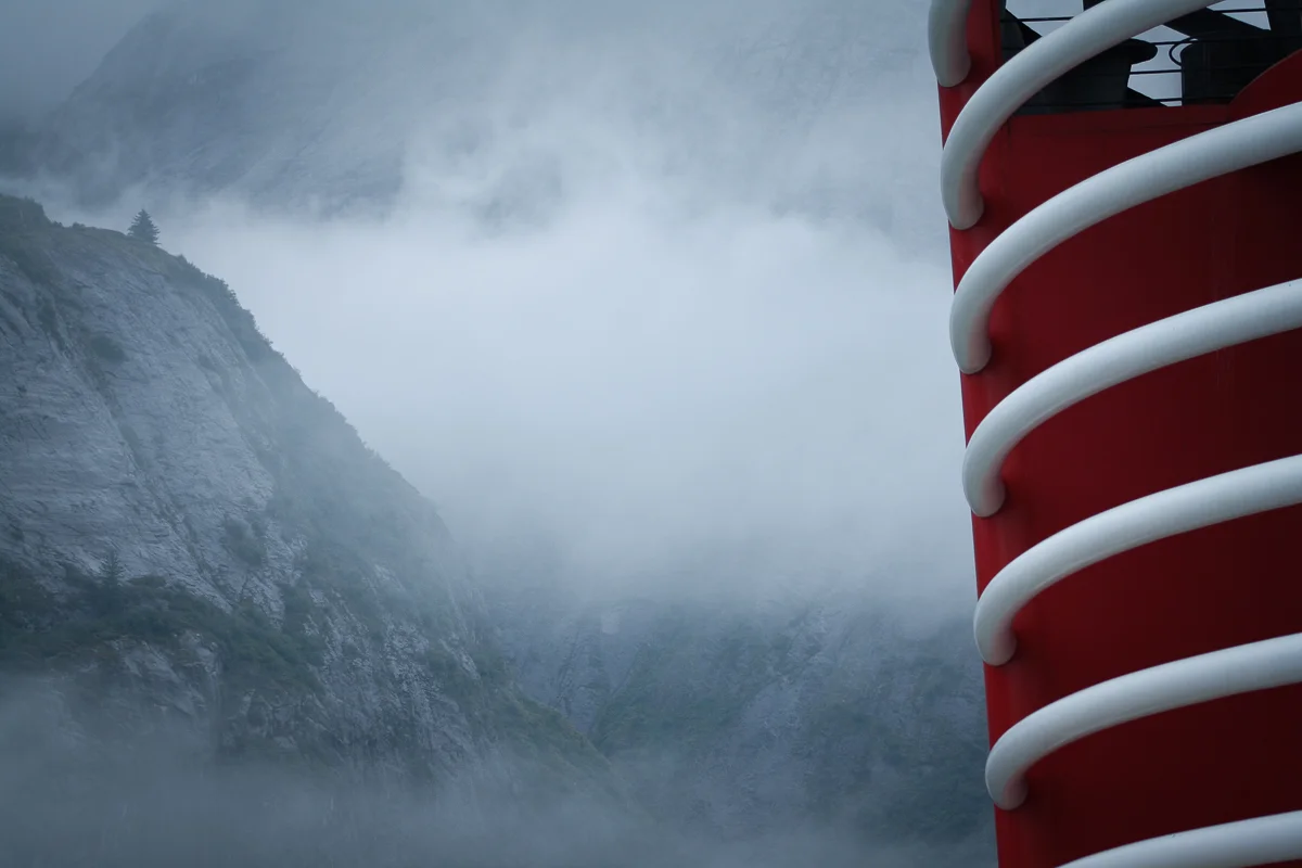 We started the day by heading out onto the top deck of the ship. From there, we could get a fantastic view and hear a cruise line's Naturalist who narrated about the fjord's history, wildlife, and our itinerary. A cloudy fog only added to the serenity of the place.