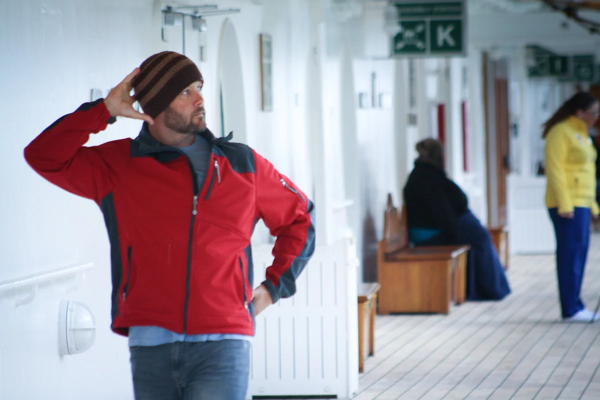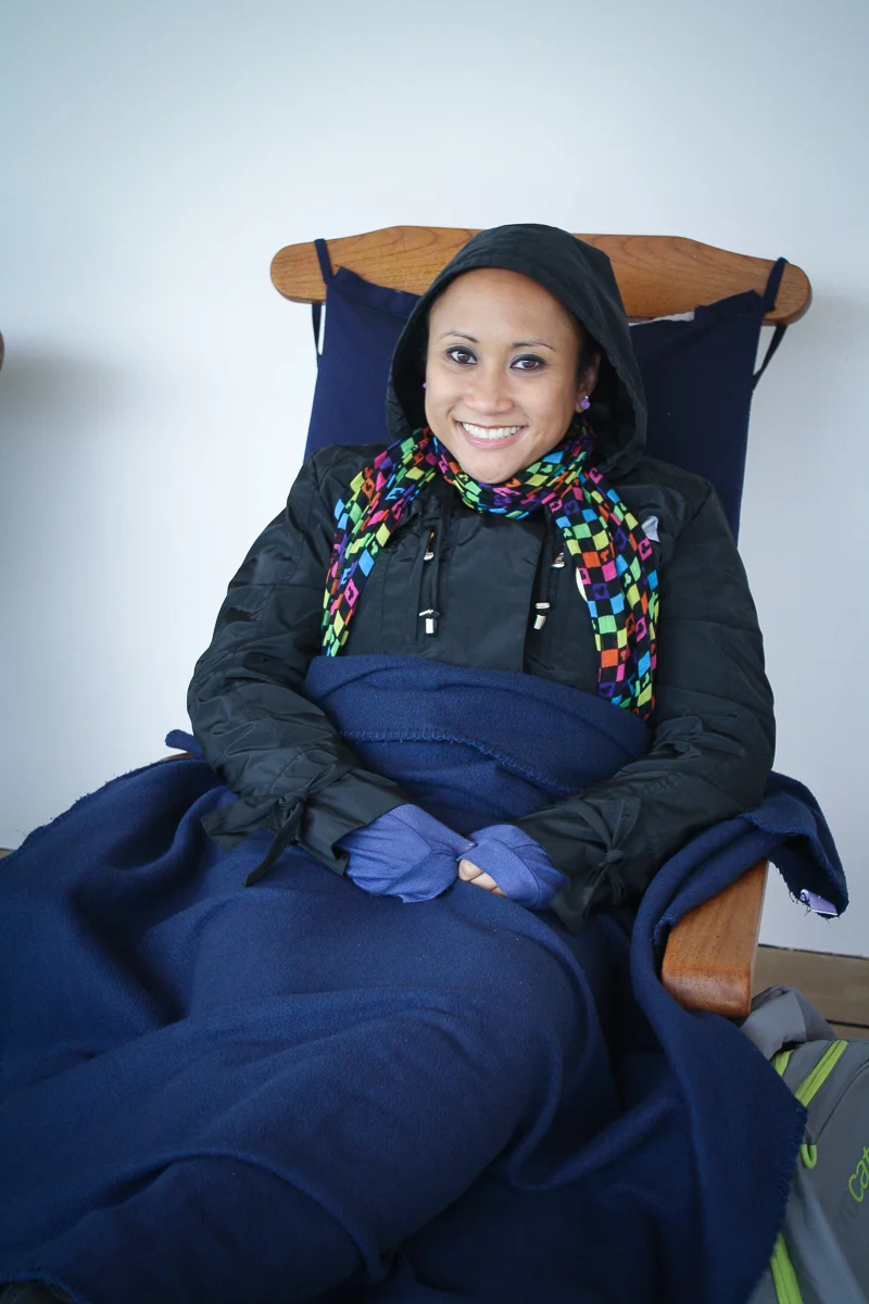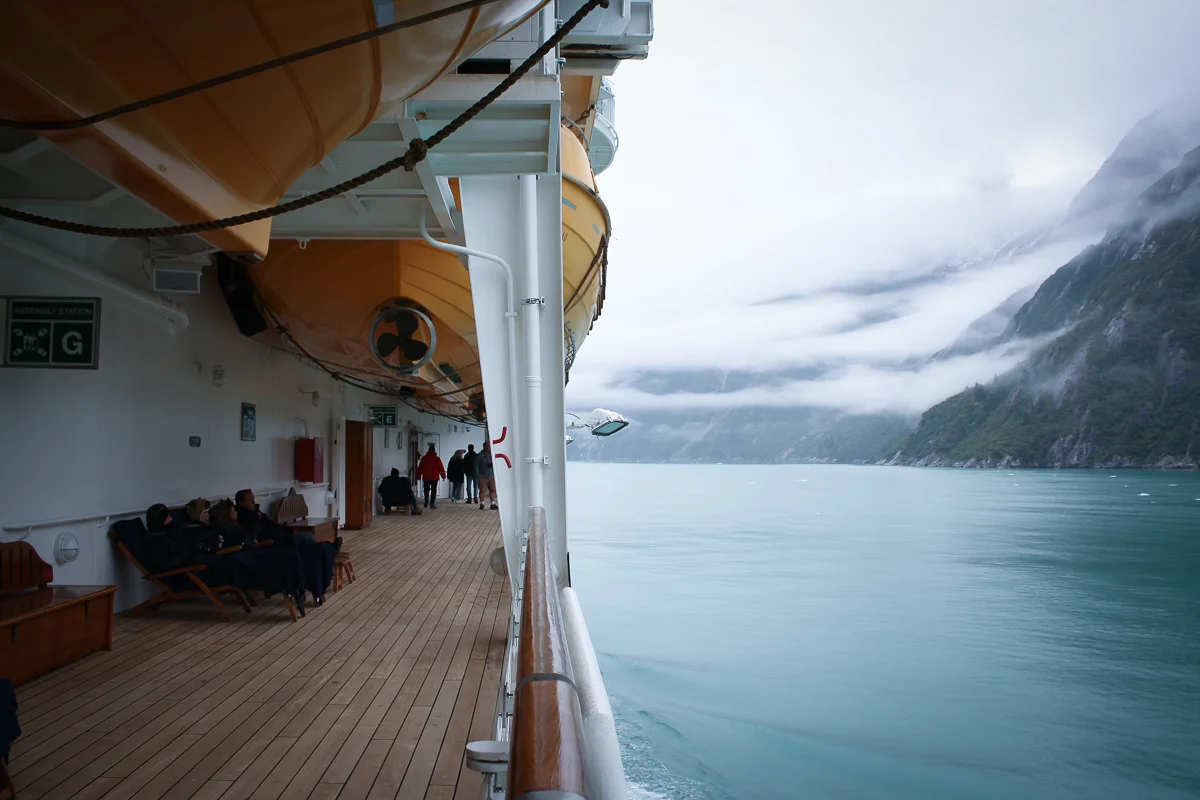 It was at this point that we got a call from others in my family. They were down on Deck 4, which is an open-air deck around the middle of the ship, where the lifeboats are stowed. Tired of competing for space with other families on the top deck, we decided to join them. The relocation proved wise as there were several deck-chairs and blankets for us to get cozy and warm in.