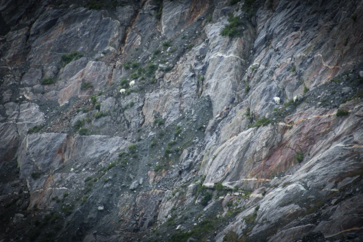 That's right, in the midst of all this wonder from floating humbly in front of a glacier, someone pointed out to the Naturalist that there were a dozen or so goats on the south-side of the canyon wall. He seemed so excited by their presence and droned on and on about them. Despite this, they were impossibly hard to find!