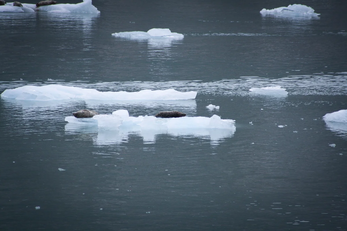 As we were standing there watching the glacier, we noticed two exciting features. One, was the presence of seals napping all over the fresh chunks of ice. When looking back at the photos, it is almost silly that we didn't see them immediately, with their dark skin standing out against the bright ice (especially considering how much time we struggled with those damn goats!).